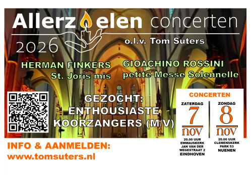 Projectkoor Lux Aeterna is op zoek naar minimaal 50 koorzangers (m/v) voor de Allerzielenconcerten op 7 en 8 november in Nuenen en Eindhoven met dit jaar een bijzonder programma rond koormuziek van Herman Finkers(!) en Rossini met begeleiding van het Valkenswaards Kamerorkest.